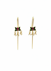 "So Beautiful! Awesome Antique Gold plated Green-Red Glass Polky-Pearl Designer Light Weight Ear Hook-Pin Cuff Earrings for women are made of brass alloy. The Earring length & width is 9 cm & 1.5 cm respectively The Earring weight is 6.2 Gram with Hook closure. This unique Gold-plated Brass Light weight Cute Designer Ear Hook-Pin Cuff Earring are meticulously handcrafted by a Team of skilled Artisan in the heart of India. Simple and comfortable to wear. Eye-catching stylish Earring. The Earrings can be combined with a variety of styles apparel. A great accessory to increase your charm. Good gift for your friends. This is our original Jewellery.