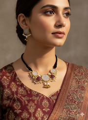 "So beautiful! Antique Gold Plated Synthetic Pearl-Off-white & Red Glass Carving Stone-Faux Kundan Polky Choker Necklace-Earring Set for women is made of brass alloy. This unique Gold-plated Brass Cute Designer Necklace-Earring Set is meticulously handcrafted by a Team of skilled Artisan in the heart of India. Simple and comfortable to wear. Eye-catching stylish Necklace & Earring. The Necklace can be combined with a variety of styles and apparel. A great accessory to increase your charm. Good gift for your friends. This is our original Jewelry.