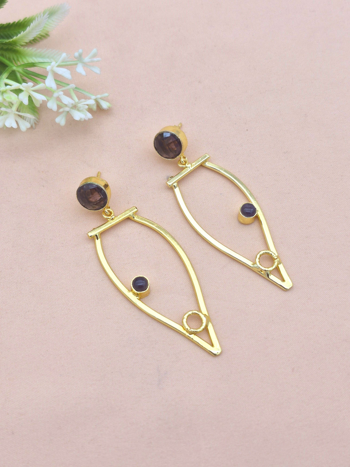 Amazing Gold Plated Dangle Earring -Amethyst stone Handcrafted Jewelry