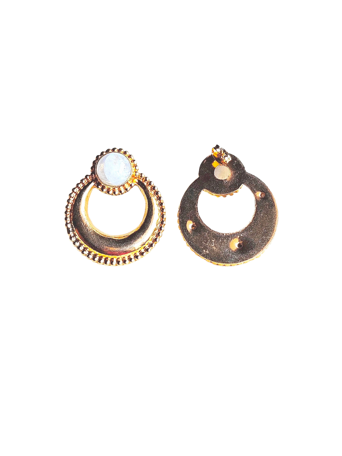 "So Beautiful! Awesome Gold plated Variation of Amethyst, White Rainbow, Black Onyx, Chalcedony, Labradorite, Amazonite, Green Beryl, Green Onyx, Pearl Semi Precious Stone Cute designer Statement Earrings for women are made of brass alloy.