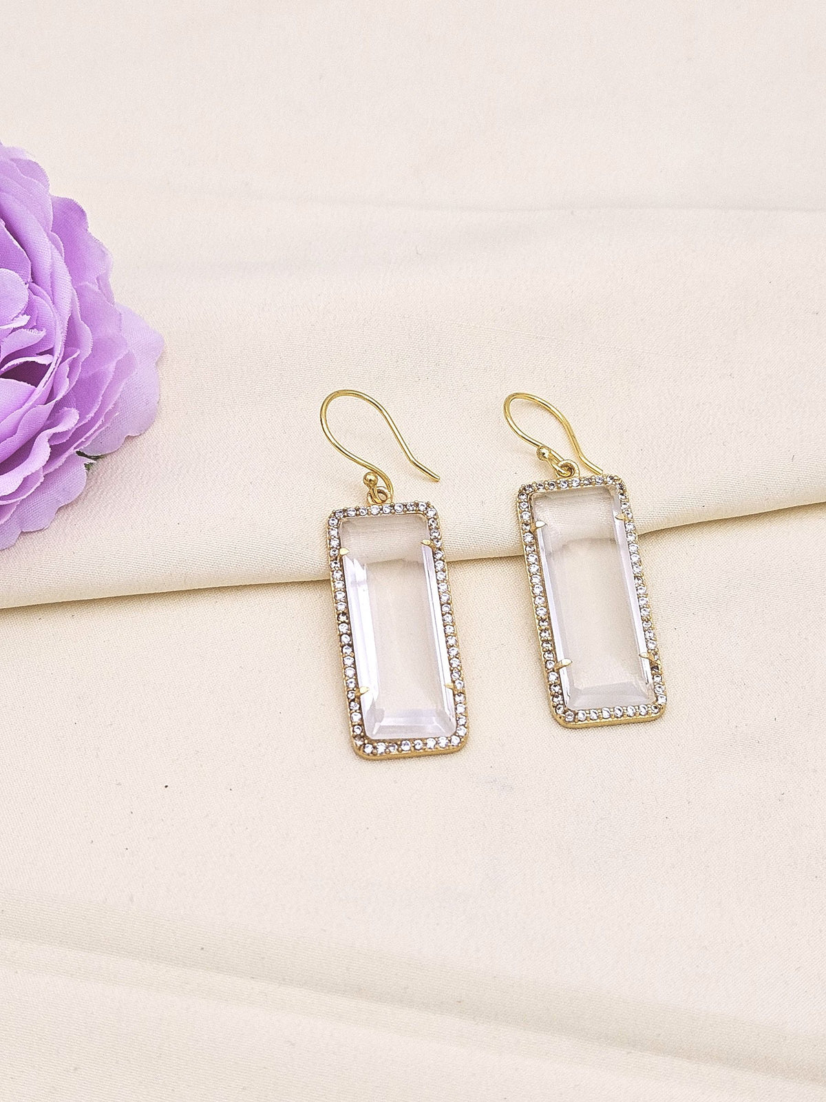 "So Beautiful! Charming Gold plated Variation of Green, Orange, Purple & White Hydro Quartz-CZ attractive Light weight Dangle Drop Earrings for women are made of brass alloy.