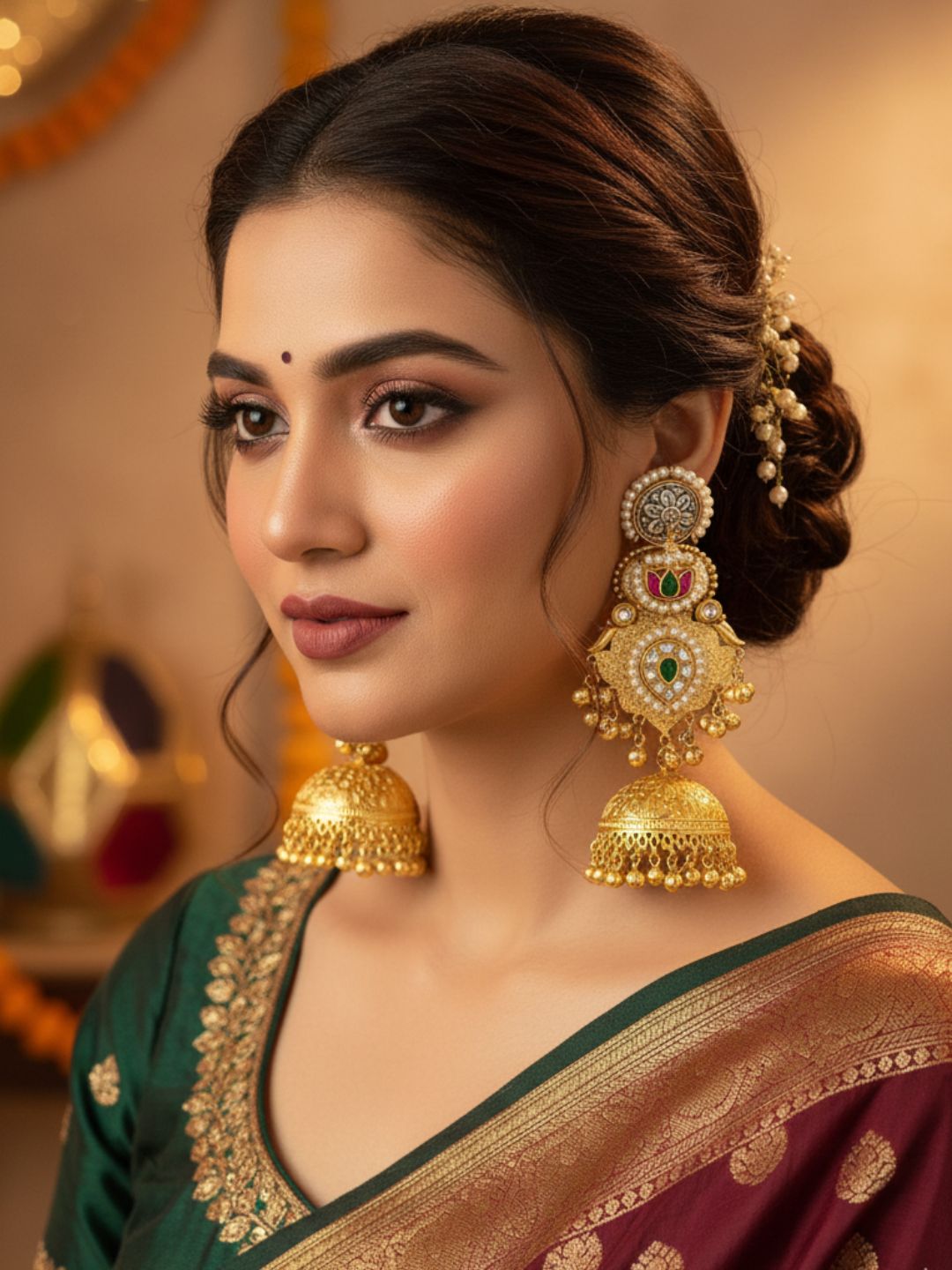 Charming Multi Color Glass Stone Motif -Synthetic Polky-Pearl Fancy Jhumka Earrings