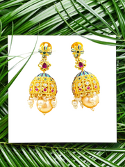 "So Beautiful! Awesome Gold plated Cubic Zirconia-Green & Red Hydro Quartz -Enamel work Designer Jhumka Earring for women are made of brass alloy.