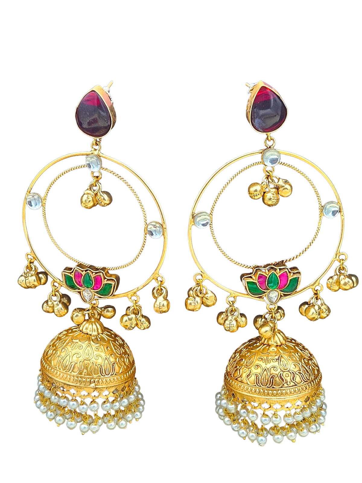 These handcrafted antique gold plated Jhumka earring are show stopping and come in traditional Indian design. Buy these Amazing antique gold Dangle Jhumka Earring.