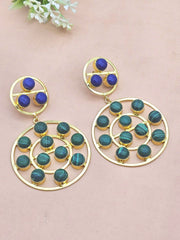 Amazing Gold Plated Multi Blue Glass-Synthetic Malachite Stones Round Designer Dangle Drop Earrings for women are made of brass alloy. The earrings length, width & weight measurements are as given in the product details above. The closure lock is Push Back.