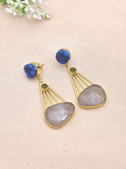 Gorgeous Gold Plated Dangle Earrings –Blue Druzy-Chalcedony-Rose Quartz stone Jewelry