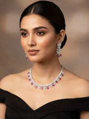 "Awesome Designer Rhodium plated Necklace-Earring Set is made of 70% silver. The Necklace length is 24 cm adjustable. The Earring length & width is 4.5 x 1.5 cm respectively. The weight of the Necklace-Earring Set is 48.3 Gram. The necklace is adjustable as it has an Adjustable Chain with extra rings. This Awesome Rhodium plated Statement Necklace-Earring Set is a show-stopping, traditional Indian necklace with Rhodium plating and handwork.
