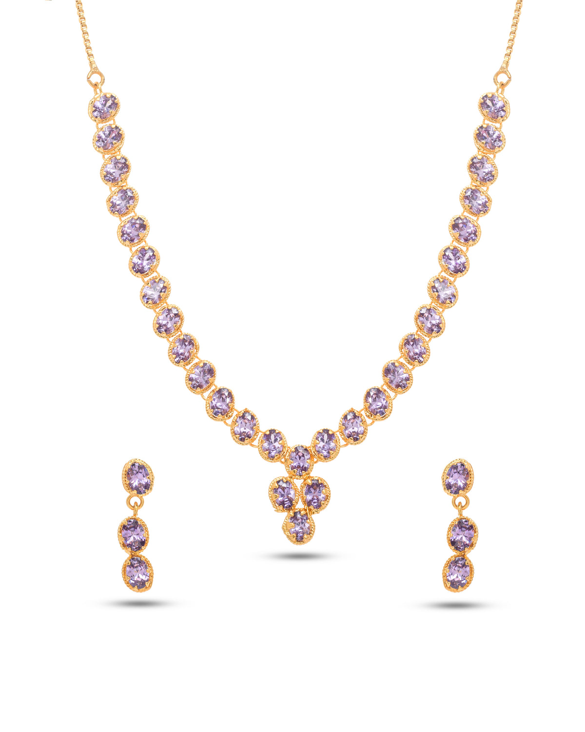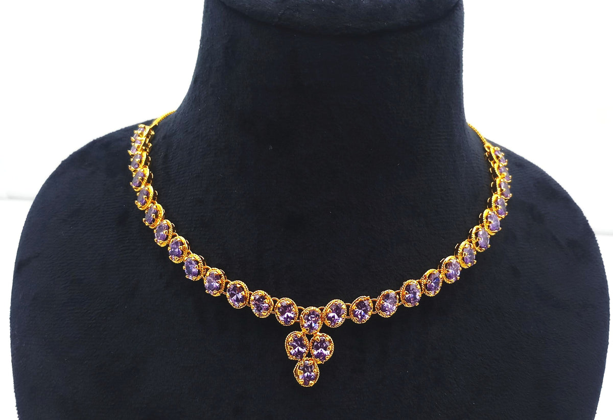 This Cute Antique Gold Purple Hydro Quartz Stone statement necklace-Earring Set is made of brass alloy with gold plating. The necklace length is 23 cm, and is adjustable with extra Rings for adjustment. The necklace Set weight is 28 Gram with S-Hook for closure.