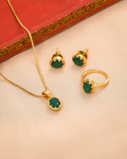This Awesome Antique Gold Green Hydro Quartz Stone Chain-Pendant Necklace-Earring-Ring Set is made of brass alloy with gold plating. The necklace length is 27 cm. The necklace Set weight is 12 Gram with S-Hook for closure.